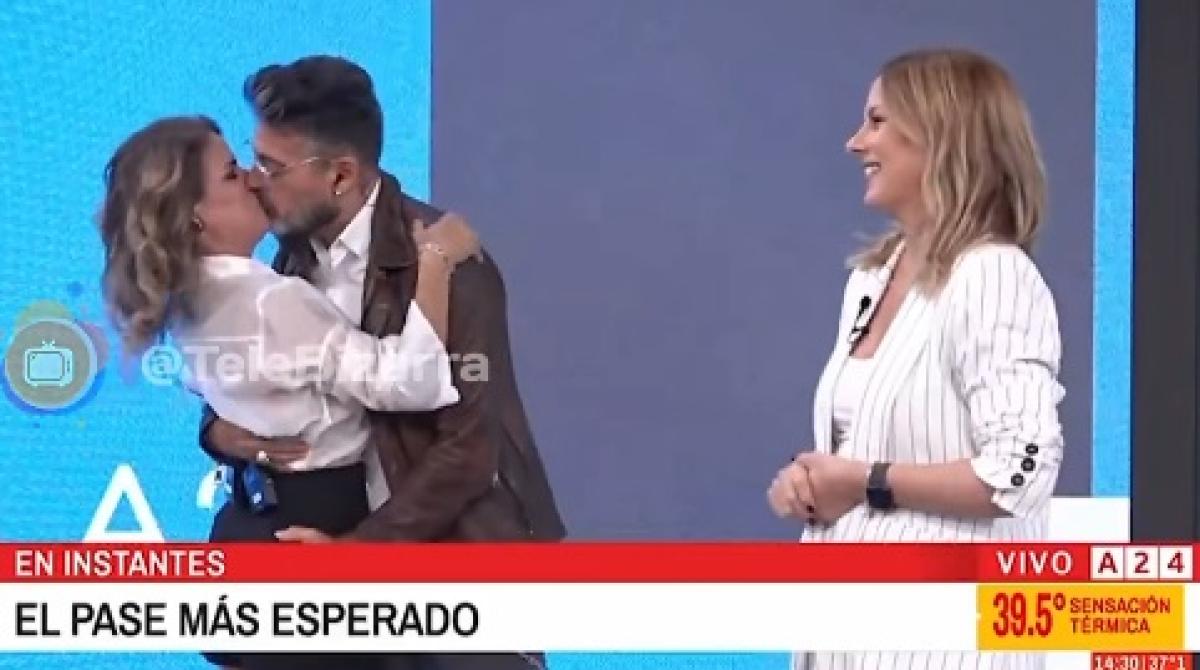 Y no sólo no faltó un guiño entre ambos sino también un símbolo del momento que atraviesan como pareja al darse un tremendo beso a la vista de sus compañeros de trabajo. Un amor asumido públicamente y sin reservas, a la vista de todos.