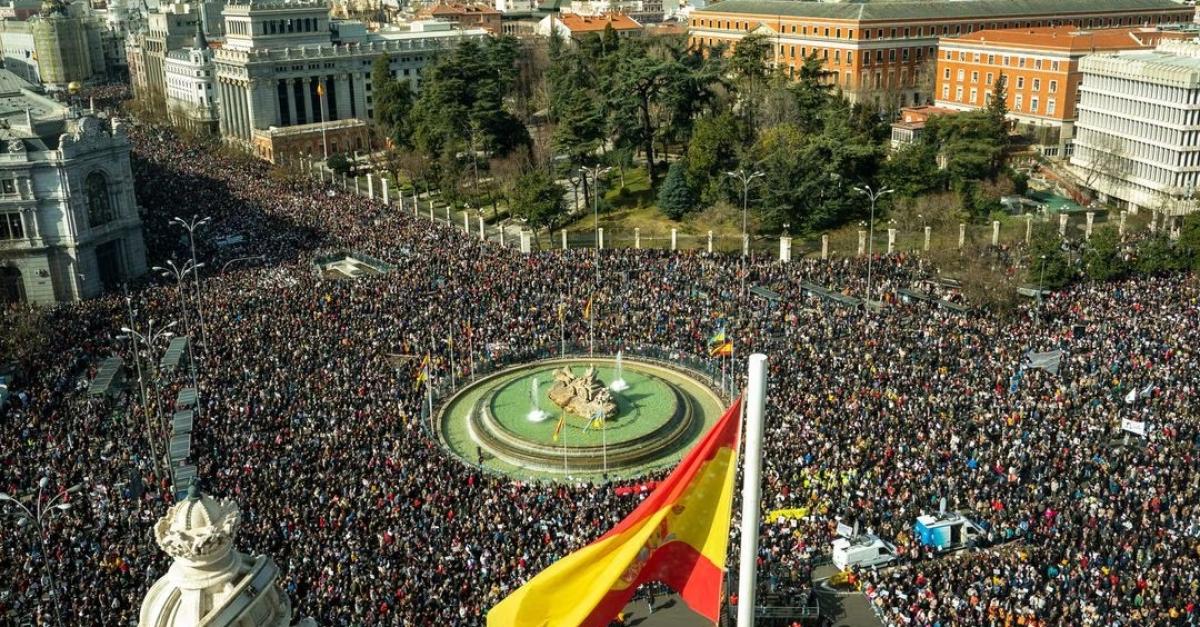 La manifestación, convocada y apoyada por 74 organizaciones sociales, contó con la presencia de 250.000 asistentes según la Delegación del Gobierno y un millón en cifras de los organizadores, que se han dividido en cuatro columnas para finalmente converger en la Plaza de Cibeles donde el gobierno local impidió el ingreso de fotoperiodistas para graficar el momento y según denunciaron los organizadores cortaron temporalmente la línea de Metro y suspendieron la actividad de las cámaras de la comuna.