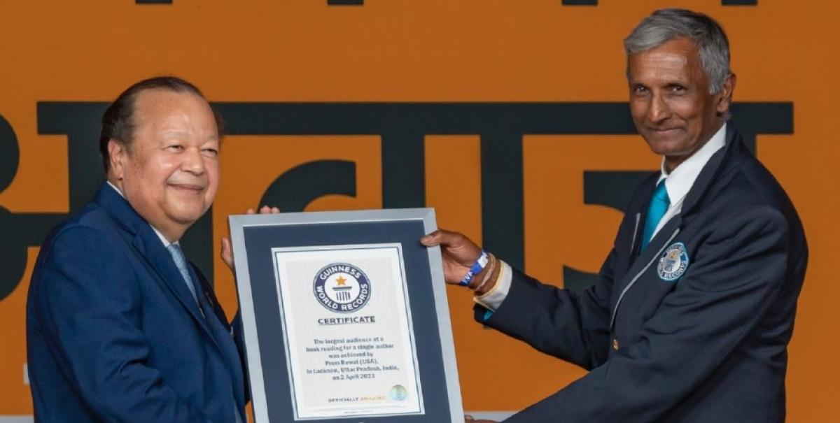 Fue reconocido en el escenario por el juez de Guinness World Records, el Sr. Pravin Patel, y se registró como el récord de audiencia más grande presente durante la lectura de un libro de un solo autor.
