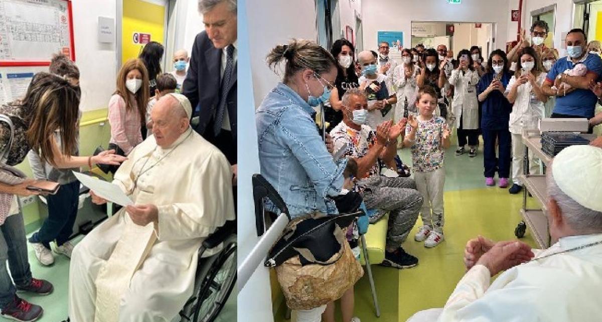 "Primeras imágenes de @Pontifex_es desde su operación abdominal del 7-6, visitando esta mañana el sector de oncología pediátrica y neurocirugía del décimo piso del hospital Gemelli, de donde podría ser dado de alta hoy o mañana (Vatican media)" publicó la periodista Elisabetta Piqué desde Roma dando cuenta de la recuperación del pontífice y el ánimo para acercarse a los pequeños que están transitando una recuperación de sus patologías.