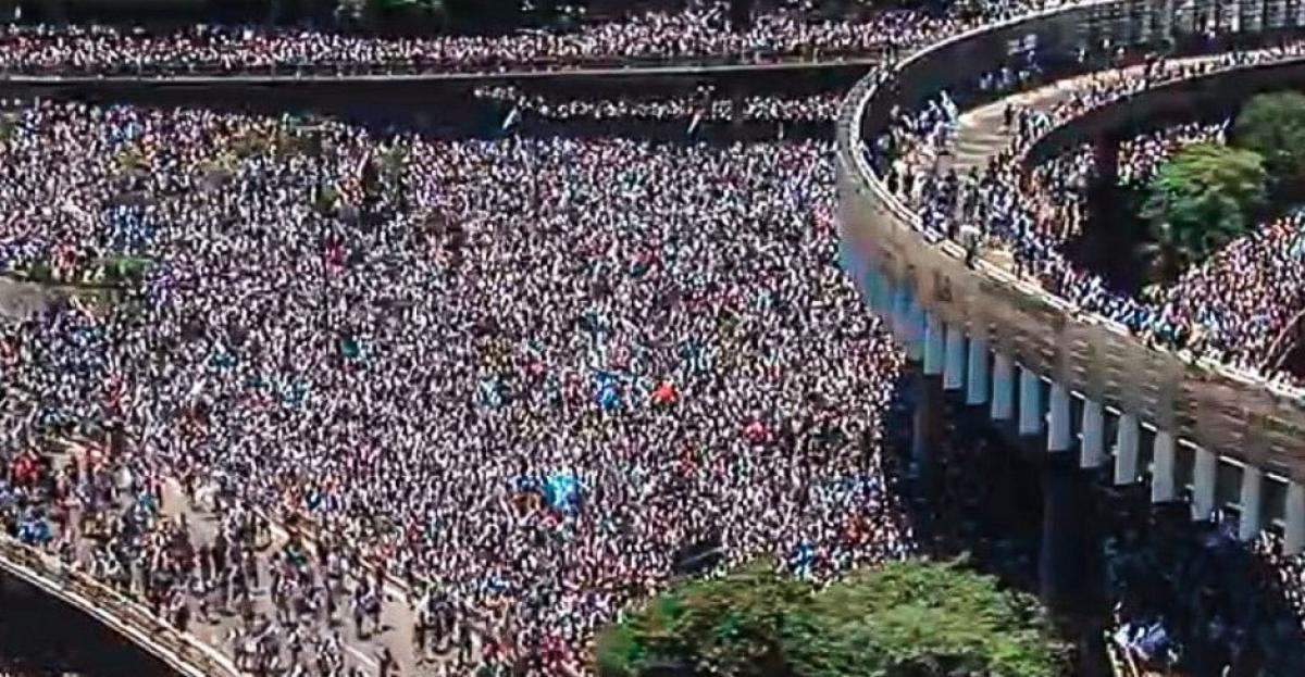 La bajada de la autopista se volvió peatonal, la ruta un mar de almas felices y exultantes, el obelisco un hervidero humano que pese a los millones concentrados en el lugar sólo se registraron según el SAME 24 heridos por caídas de semáforos, árboles y techos de estaciones de Metrobus. Una cifra insignificante si se cuantifica la enormidad de la movilización y la concentración.