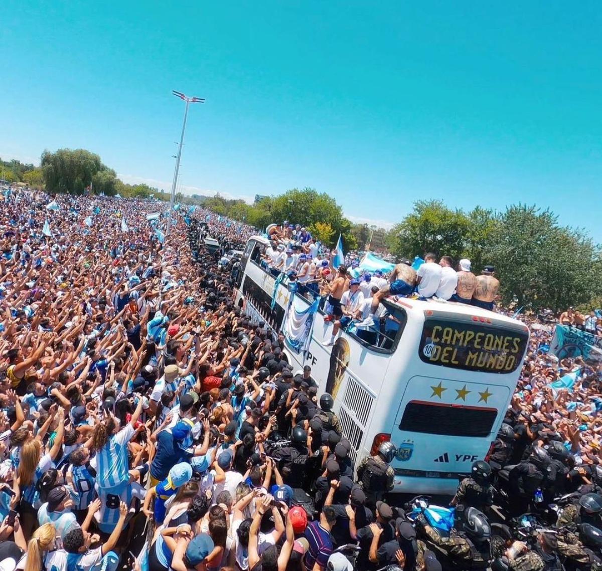 Más de 5 millones de argentinos y argentinas se volcaron a las calles desde la madrugada para recibir y abrazar (simbólicamente) a la Selección de Fútbol del país luego de lograr la Copa del Mundo en Qatar 2022.