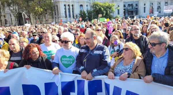 ALMODÓVAR CON MILES DE MADRILEÑOS MARCHAN POR LA SALUD PÚBLICA