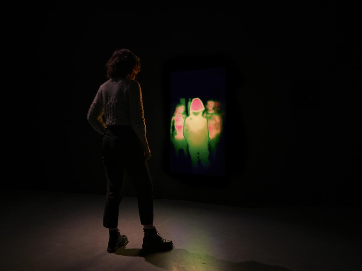 “En una sala oscura, un rectángulo luminoso es un espejo que refleja nuestra imagen térmica. Otras figuras termales se acercan y nos susurran en diferentes lenguas”...