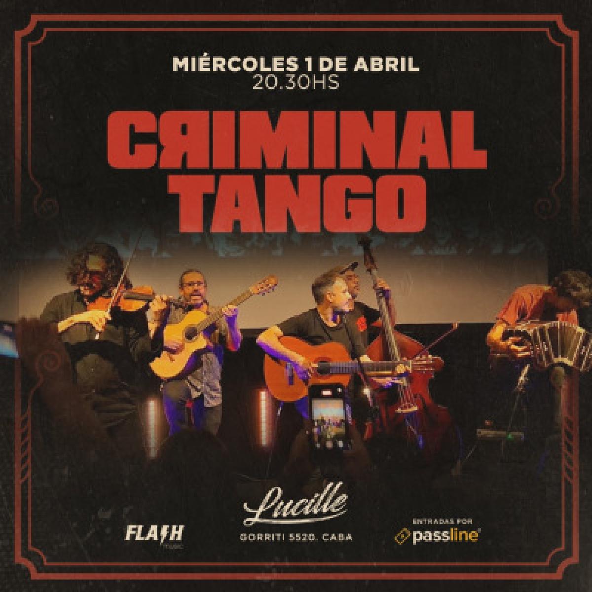 CRIMINAL TANGO es un quinteto típico (violín, bandoneón, guitarra, contrabajo y cantor) que recrea el repertorio del grupo Patricio Rey y sus redonditos de ricota con impronta y arreglos tangueros. Se incluyen obras de distintas épocas de la banda, varias de sus canciones más emblemáticas, de la etapa conocida como “inéditos”, algunos temas de las carreras solistas de sus integrantes, y desde 2025 temas originales de CRIMINAL TANGO.